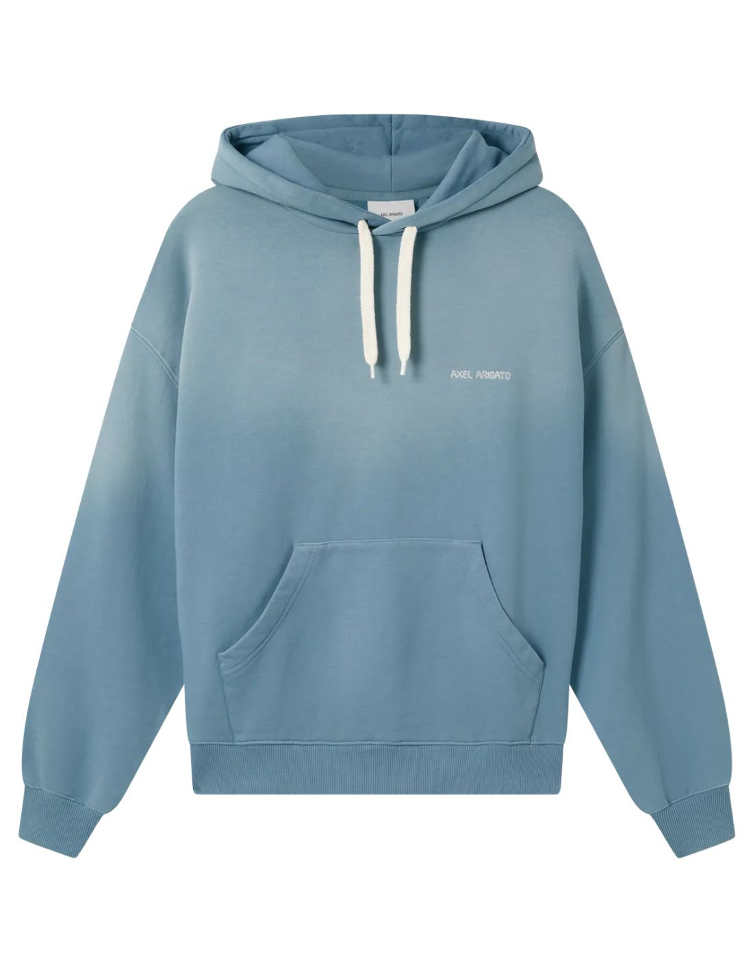 AXEL ARIGATO blue “Ethos” sweatshirt in organic cotton, made in Portugal. Oversized cut. Adjustable hood thanks to a drawstring. dropped shoulders. Long sleeves. Ribbed wrists and waist. Embroidery on the chest.
